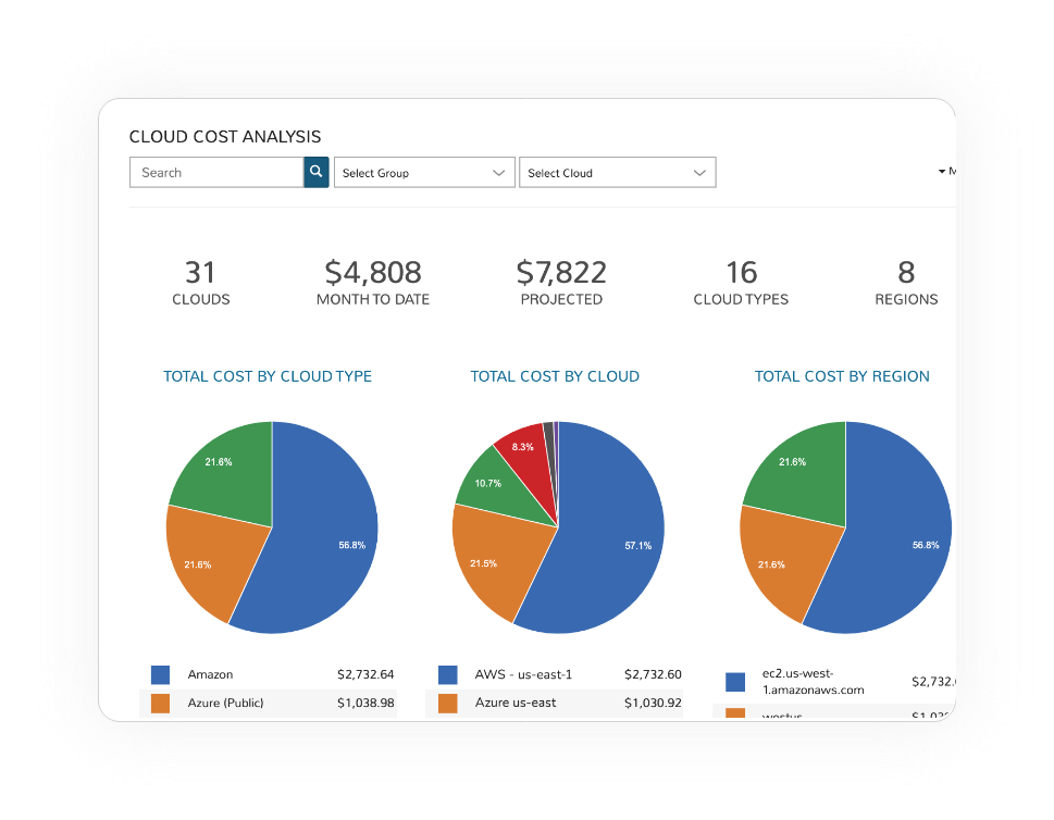 From hyperscalers like AWS, Azure, and GCP to enterprise clouds like Expedient and everything in between, we can connect and analyze costs.